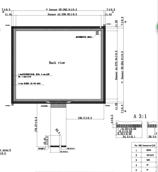 | 4 | OD of ITO sensor | 362.8*294.8mm |