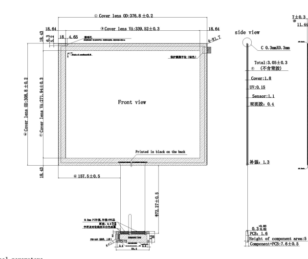 | 2 | OD of cover lens | 376.8*308.08mm |