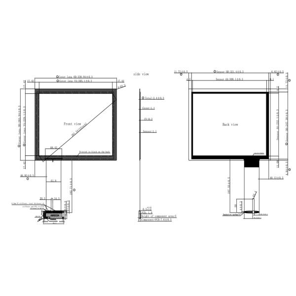 | Outline of ITO Sensor: | 321.4*247.38±0.3mm |